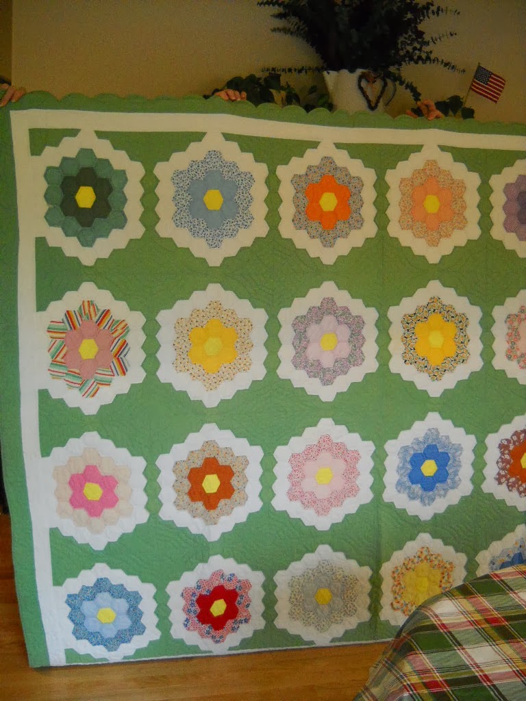 My small group meets twice a month. I love spending time with them. We have the greatest show and tell. This month someone brought old family quilts.