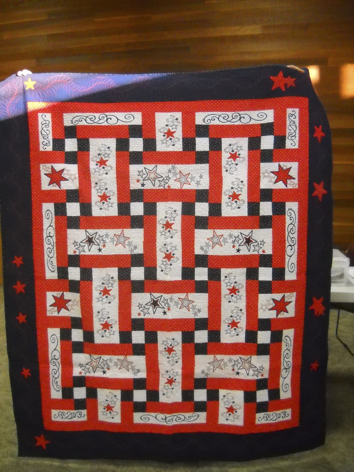 After raiding my stash for red, white and blue fabric, I learned from Carol that donated quilts do NOT need to be red, white and blue. ANY COLOR is okay. Just remember to make masculine quilts. Read the basic requirements to learn more.